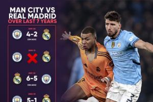 皇馬與曼城再歐冠共有過交手15場,其中有12場是在淘汰賽中,淘汰賽皇馬4次晉級,曼城2次。小組賽3場交手兩隊(duì)各1勝1平1負(fù)。