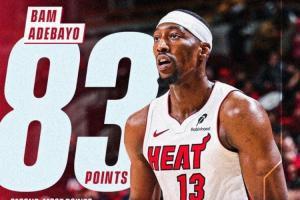 體育資訊03月12日訊 熱火主場(chǎng)150-129大勝奇才,阿德巴約狂轟83分創(chuàng)歷史單場(chǎng)第二高分。