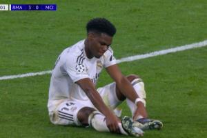 體育資訊03月12日訊 皇馬vs曼城,瓊阿梅尼第64分鐘受傷,在場(chǎng)邊接受治療,隨后暫時(shí)回到了比賽!
