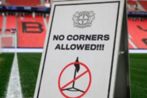 賽前勒沃庫(kù)森官推曾曬出球場(chǎng)角旗區(qū)的趣味標(biāo)語(yǔ)牌(可能為AI生成):“禁止角球?。?!”。
