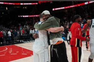 賽后,庫(kù)明加曬出了與克萊擁抱的照片,并寫道:“我的兄弟?!?/p>