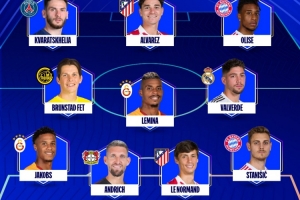體育資訊3月13日訊 歐冠1/8決賽首回合已經(jīng)結(jié)束了全部的爭奪,歐足聯(lián)官方評選出了周最佳陣,K77、小蜘蛛、奧利塞組成進攻三叉戟,巴爾韋德、庫爾圖瓦在列。