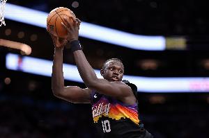 第一節(jié),太陽中鋒馬盧阿奇表現(xiàn)積極,出場4分33秒2投2中,拿到4分3籃板,正負值+4。