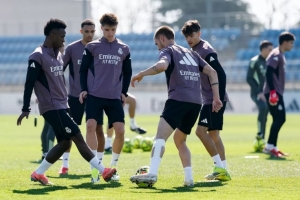 體育資訊3月13日訊 北京時(shí)間3月15日凌晨4:00,2025-26賽季西甲聯(lián)賽第28輪,皇馬將坐鎮(zhèn)伯納烏球場迎戰(zhàn)埃爾切。今日皇馬進(jìn)行了訓(xùn)練,備戰(zhàn)本場比賽。