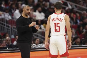 談及申京因傷缺陣,球隊(duì)啟用芬尼-史密斯擔(dān)任首發(fā),沒有安排謝潑德或者卡佩拉進(jìn)入首發(fā)陣容的決定,烏度卡說(shuō)道:“我們既沒讓謝潑德這樣的小個(gè)子首發(fā),也沒讓卡佩拉這種大個(gè)子首發(fā),就是為了能無(wú)限換防對(duì)手相對(duì)小一些的陣容。”