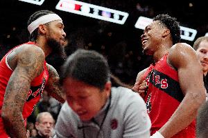 此役猛龍前鋒英格拉姆表現(xiàn)出色,打了38分鐘20投13中,三分6中5、罰球7中5砍全場最高36分外加7籃板3助攻1搶斷,正負值+17也是最高。