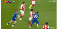 比賽第30分鐘,賴斯帶球推進(jìn),與薩卡做了一個傳球配合,隨后他在加納的防守下倒在禁區(qū)里!裁判依舊沒有表示。