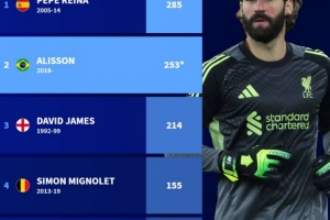 體育資訊3月15日訊 阿利松與利物浦正式完成續(xù)約,德轉(zhuǎn)也盤點(diǎn)了利物浦隊(duì)史門將球員在英超出場(chǎng)次數(shù)榜,具體如下: