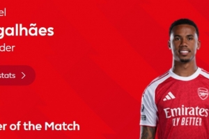 本場比賽加布里埃爾首發(fā)出場發(fā)揮穩(wěn)健,貢獻8次解圍,賽后當選英超官方評選出的本場比賽最佳球員。