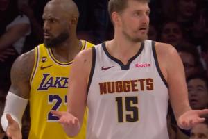 GIF-戈登突破造成犯規(guī) 詹姆斯與約基奇同時(shí)攤手