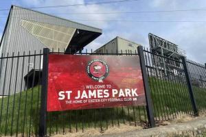 英甲球隊(duì)??巳爻堑闹鲌?,也叫圣詹姆斯公園球場,有西班牙球迷從倫敦自駕前往圣詹姆斯球場看紐卡斯?fàn)柭?lián)對陣巴薩的歐冠,導(dǎo)航導(dǎo)錯(cuò)了,去了埃克塞特,??巳爻蔷銟凡抗ぷ魅藛T隨后貼心地送給了他一張英甲門票。