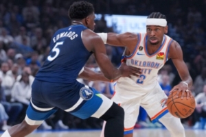 雷霆擊破森林狼,亞歷山大vs愛德華茲:22投20分對17投19分,倆都被防住了。