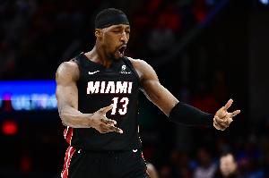 上半場(chǎng),熱火內(nèi)線阿德巴約狀態(tài)炸裂,在首節(jié)就狂轟夸張的31分,次節(jié)繼續(xù)火熱繼續(xù)得分上雙,打了19分鐘,投籃24中13,三分球11中5,罰球14中12,砍下43分5籃板2搶斷1蓋帽的數(shù)據(jù),正負(fù)值+11。